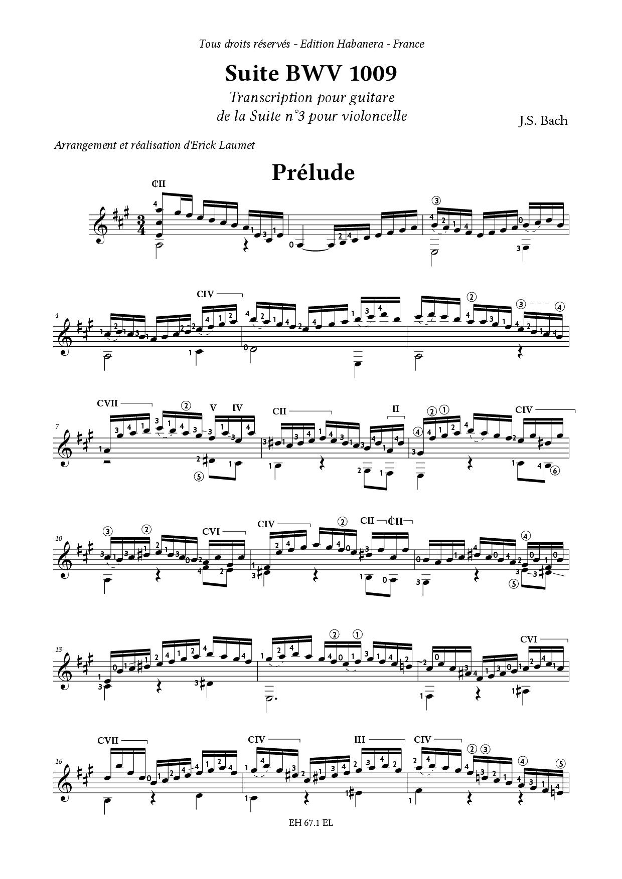 Bach J.S - Suite BWV 1009 - Transcription pour guitare de la Suite n°3 pour violoncelle - Erick Laumet